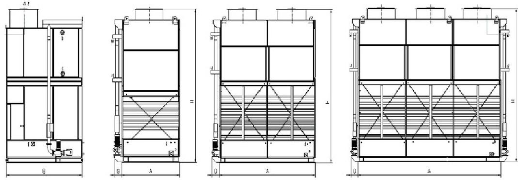 The cooling tower is designed to be standard upper body part and bottom body part, making it is able to be shipped separately and saves transportation and installation cost.